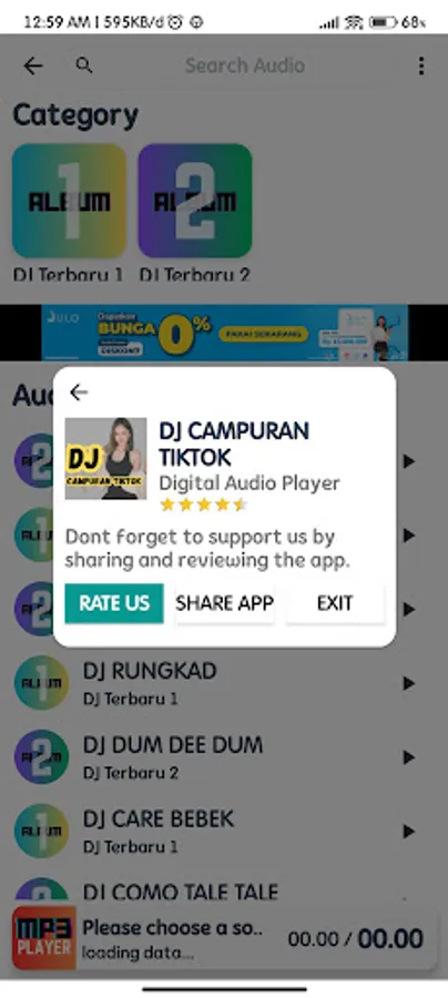 DJ MIX TIKTOK, the advanced music player application, is the top choice for music lovers. With a complete collection of songs from various genres such as Dj music, classic and the latest, this application offers a music experience without limits. The attractive playlist feature allows users to create personal playlists according to their tastes, while the option to share songs via social media enriches interaction with friends. DJ MIXED TIKTOK comes with an intuitive interface and integrated lyrics, as well as state-of-the-art technology that delivers crystal clear sound on multiple devices. This application also allows users to become stars with passionate singing. With support for full audio formats, free download features, and access without logging in, DJ MAMPURAN TIKTOK delivers an impressive music experience. Easily get the latest song updates, music recommendations and watch music videos. Music for various moods such as party, sleep, sports, relaxation, meditation, and work, all of which can be enjoyed through this application. DJ MAMPURAN TIKTOK provides a personal music player with stylish playlists and music inspiration that accompanies vacation trips, driving, and helps relieve stress. Uninterrupted access and an attractive appearance with night mode make this application even more superior in the Play Store. High quality stereo sound maximizes the music experience of the users. What's more, the app can be downloaded for free and is compatible with both Android and iOS devices. Available in multiple languages, quick search by mood, as well as a shuffle player feature that brings the music to life in an incredible way. Make DJ MIX TIKTOK your constant companion in your musical adventures.