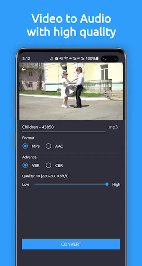 -Video to audio: extract the audio from the video, and support to adjust the audio quality, from low to high, a total of 10 levels can be adjusted