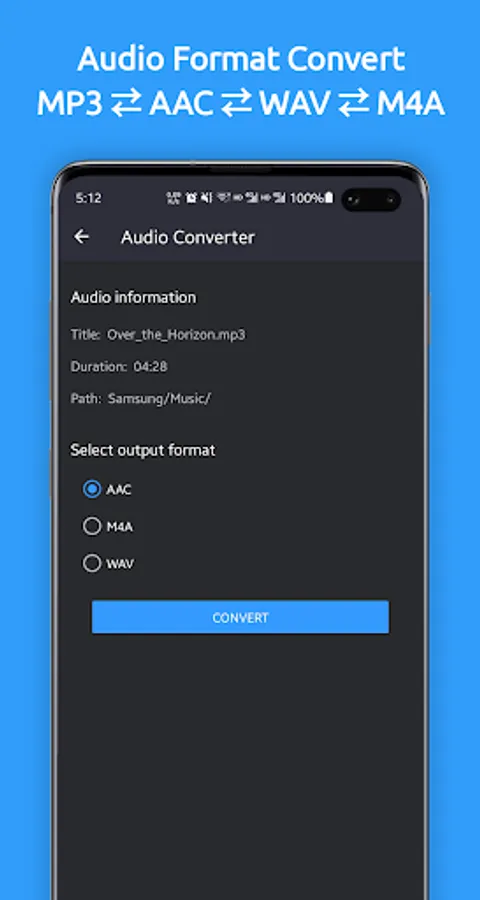-Music format conversion: change one music format to another, such as: AAC to MP3, M4A to MP3, MP3 to WAV, etc.