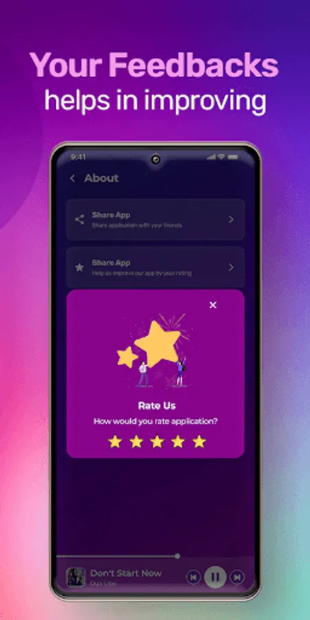 Music Player – MP3 Songs Player is specifically for the users to enjoy songs and music of their choice. All users are requested to please put your feedback and let us know if you want to see some new features suggested from your side. We will be happy to see your suggestions.