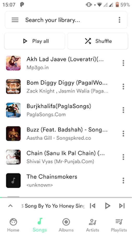 1. Choose songs from Library, albums, artists, genres, songs, playlists, and folders.