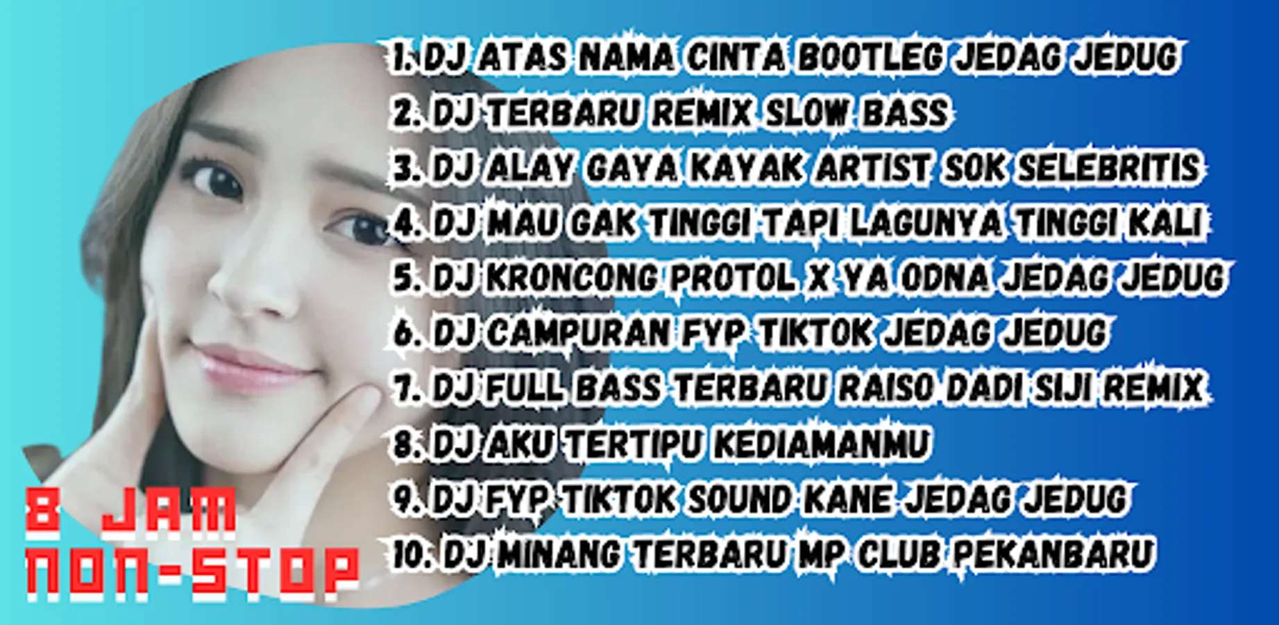 Dj In the Name of Love Jedag Jedug, a sophisticated music player application, is the first choice for music lovers. With a complete collection of songs from various genres such as Dj music, classic and the latest, this application offers a music experience without limits. The attractive playlist feature allows users to create personal playlists according to their tastes, while the option to share songs via social media enriches interaction with friends. Dj Atas Nama Cinta Jedag Jedug comes with an intuitive interface and integrated lyrics, as well as the latest technology that delivers clear sound on various devices. This application also allows users to become stars with passionate singing. With full audio format support, free download features, and access without logging in, Dj In the Name of Love Jedag Jedug delivers an impressive music experience. Easily get the latest song updates, music recommendations and watch music videos. Music for various moods such as party, sleep, sports, relaxation, meditation, and work, all of which can be enjoyed through this application. Dj Atas Nama Cinta Jedag Jedug provides a personal music player with stylish playlists and music inspiration that accompanies vacation trips, driving, and helps relieve stress. Uninterrupted access and an attractive appearance with night mode make this application even more superior in the Play Store. High quality stereo sound maximizes the music experience of the users. What's more, the app can be downloaded for free and is compatible with both Android and iOS devices. Available in multiple languages, quick search by mood, as well as a shuffle player feature that brings the music to life in an incredible way. Make Dj In the Name of Love Jedag Jedug a loyal friend in your musical adventure.