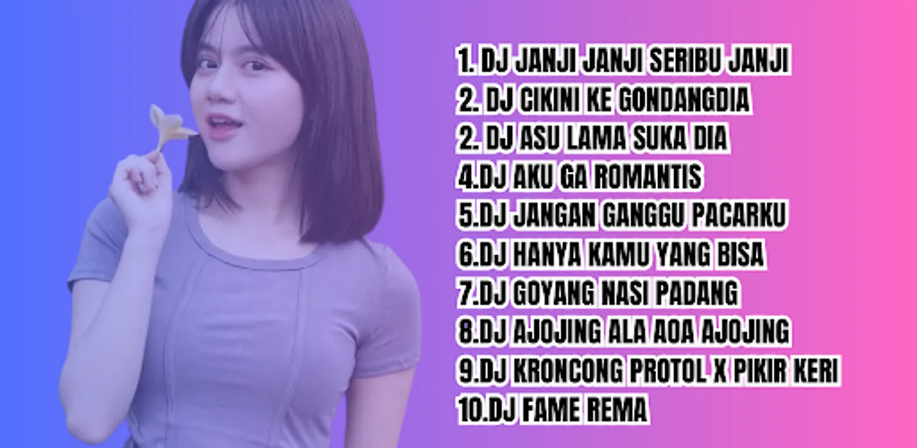 Dj Janji Promises Thousand Promises, a sophisticated music player application, is the first choice for music lovers. With a complete collection of songs from various genres such as Dj music, classic and the latest, this application offers a music experience without limits. The attractive playlist feature allows users to create personal playlists according to their tastes, while the option to share songs via social media enriches interactions with friends. Dj Janji Janji Seribu Janji comes with an intuitive interface and integrated lyrics, as well as the latest technology that delivers crystal clear sound on various devices. This application also allows users to become stars with passionate singing. With full audio format support, free download features, and access without logging in, Dj Janji Janji Seribu Janji delivers an impressive music experience. Easily get the latest song updates, music recommendations and watch music videos. Music for various moods such as party, sleep, sports, relaxation, meditation, and work, all of which can be enjoyed through this application. Dj Janji Janji Seribu Janji provides a personal music player with stylish playlists and music inspiration that accompanies vacation trips, driving and helps relieve stress. Uninterrupted access and an attractive appearance with night mode make this application even more superior in the Play Store. High quality stereo sound maximizes the music experience of the users. What's more, the app can be downloaded for free and is compatible with both Android and iOS devices. Available in multiple languages, quick search by mood, as well as a shuffle player feature that brings the music to life in an incredible way. Make Dj Janji Promises a Thousand Promises a loyal friend in your musical adventures.