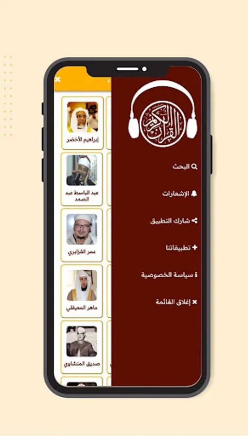 2. A variety of reciters: Listen to the Noble Qur’an with the distinctive voices of the most famous reciters around the world, such as Ibrahim Al-Akhdar, Ibrahim Al-Jabreen, Abu Bakr Al-Shatri, Ahmed Al-Hudhaifi, Ahmed Al-Ajmi, Ahmed Saud, Ahmed Issa Al-Maasrawi, Ahmed Nainaa, Idris Abkar, Al-Dokali Muhammad Al-Alam Al-Zain Muhammad, Al-Ayoon Al-Kushi, Al-Fateh Muhammad Al-Zubair, the reader Yassin, Tawfiq Al-Sayegh, Hassan Saleh, Khaled Al-Jalil, Khaled Al-Qahtani, Khalifa Al-Tunaiji, Saad Al-Ghamdi, Saud Al-Shuraim, Salah Al-Budair, Salah Bu Khater, Adel Al-Kalbani, Abdul Basit Abdul Samad, Abd al-Rahman al-Sudais, Abd al-Aziz al-Ahmad, Abd Allah al-Juhani, Abd Allah al-Khayyat, Abd Allah al-Matrod, Abd Allah Basfar, Abd Allah Kamel, Abd al-Wadud Hanif, Abd al-Wali al-Arkani, Abd al-Rashid Sufi, Ali Jaber, Omar al-Qazabri, Faris Abbad, Maher al-Muaiqly , Muhammad al-Barrak, Muhammad al-Tablawi, Muhammad al-Luhaidan, Muhammad al-Muhaisni, Muhammad Ayoub, Muhammad Jibril, Muhammad Siddiq al-Minshawi, Mahmoud Khalil al-Hosari, Mahmoud Ali al-Banna, Meshari al-Afasy, Mustafa al-Gharbi, Mustafa al-Lahuni, Nasser al-Qatami, Nabil al-Rifai, Hani al-Rifai, Yasser Al-Dosari..., and other famous reciters.