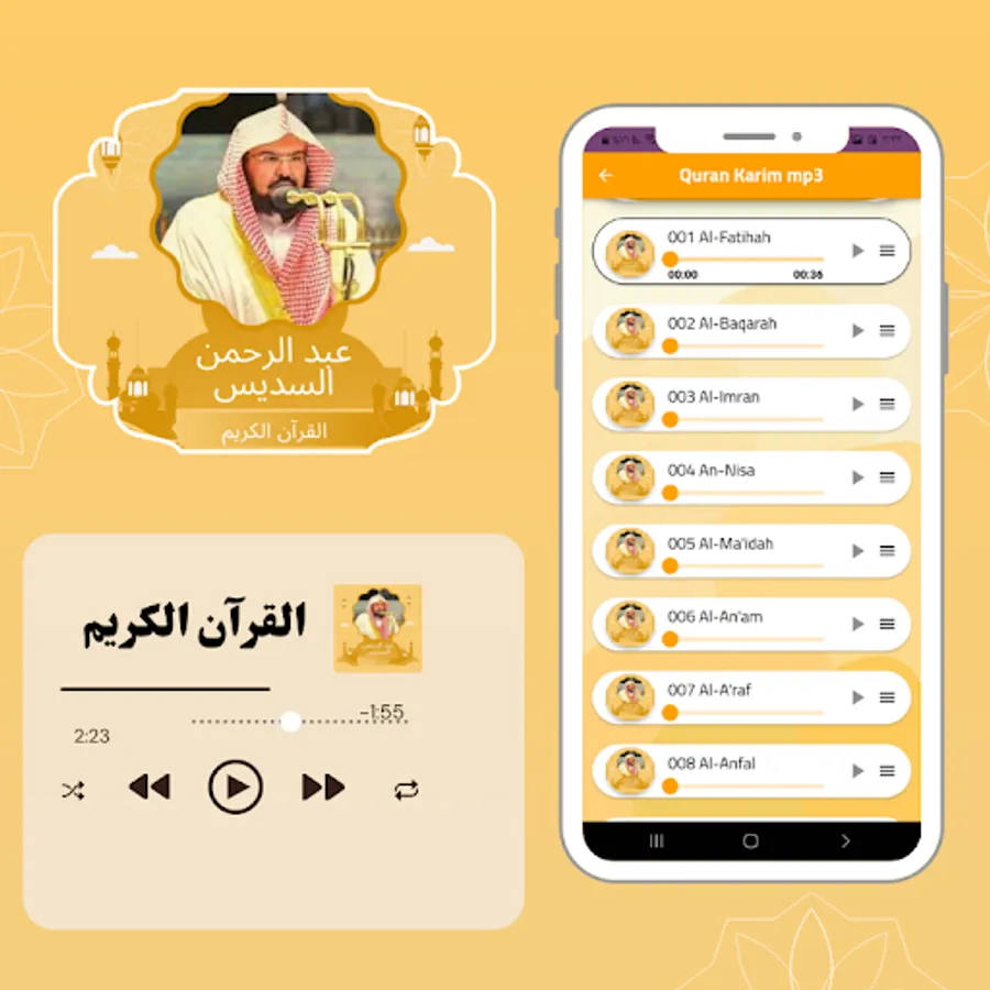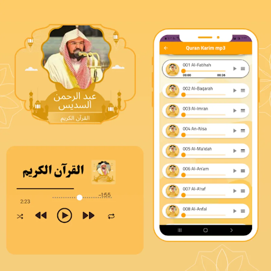 You can Abdul Rahman Al-Sudais. From hearing all the surahs of the Noble Qur’an through your tablet or mobile phone with complete ease by downloading one application that contains all the surahs of the Holy Qur’an with the most beautiful voices, and the application is also characterized as free and available for use by everyone in all countries