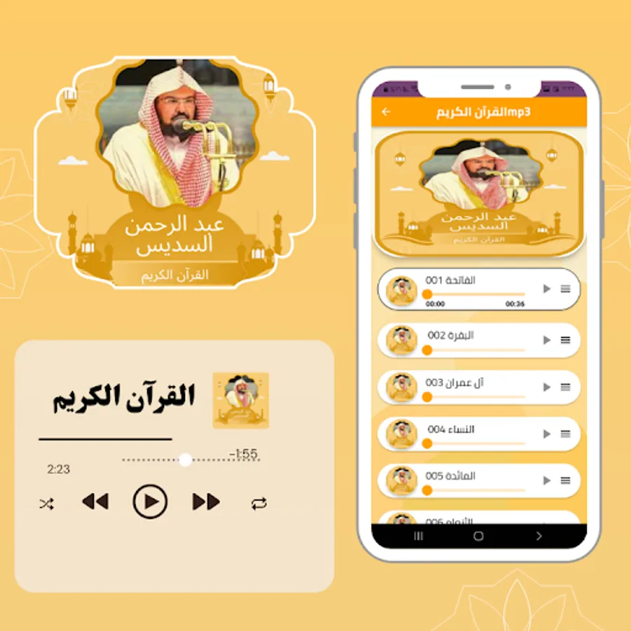 The interface of the Abdul Rahman Al-Sudais program is simple and very easy to allow you to use the program easily and you will not face any difficulty in the process of downloading the Quran application on Jaber from the store, and you will be able to use it and hear the surahs of the Holy Quran at any time and anywhere