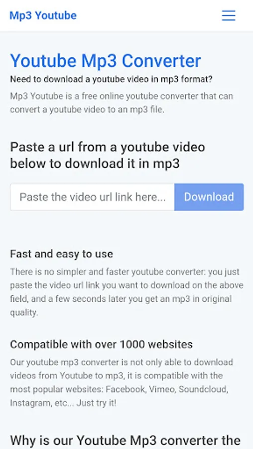 MP3 and MP4 converter combined in one app. Just copy and paste the link of a video you want. You can easily access wherever you want because it has a stylish and simple interface.Easy to use and practically space-saving application size.