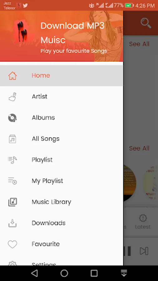 * Esta aplicación admite la descarga de contenido de música mp3 desde nuestro propio servidor.