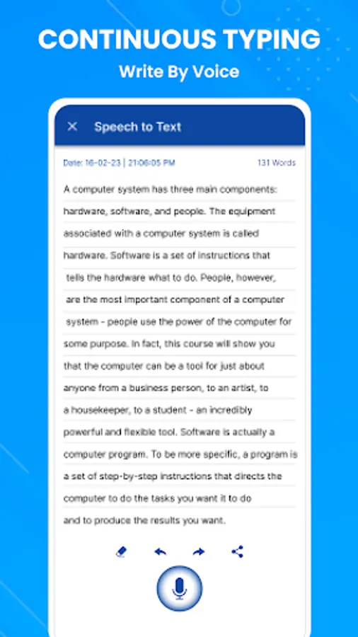Speech to text App, users can capture audio input using their device's built-in microphone or an external recording device. Voice to text translation app advanced algorithms analyzes the acoustic properties of the speech, such as volume, and duration.