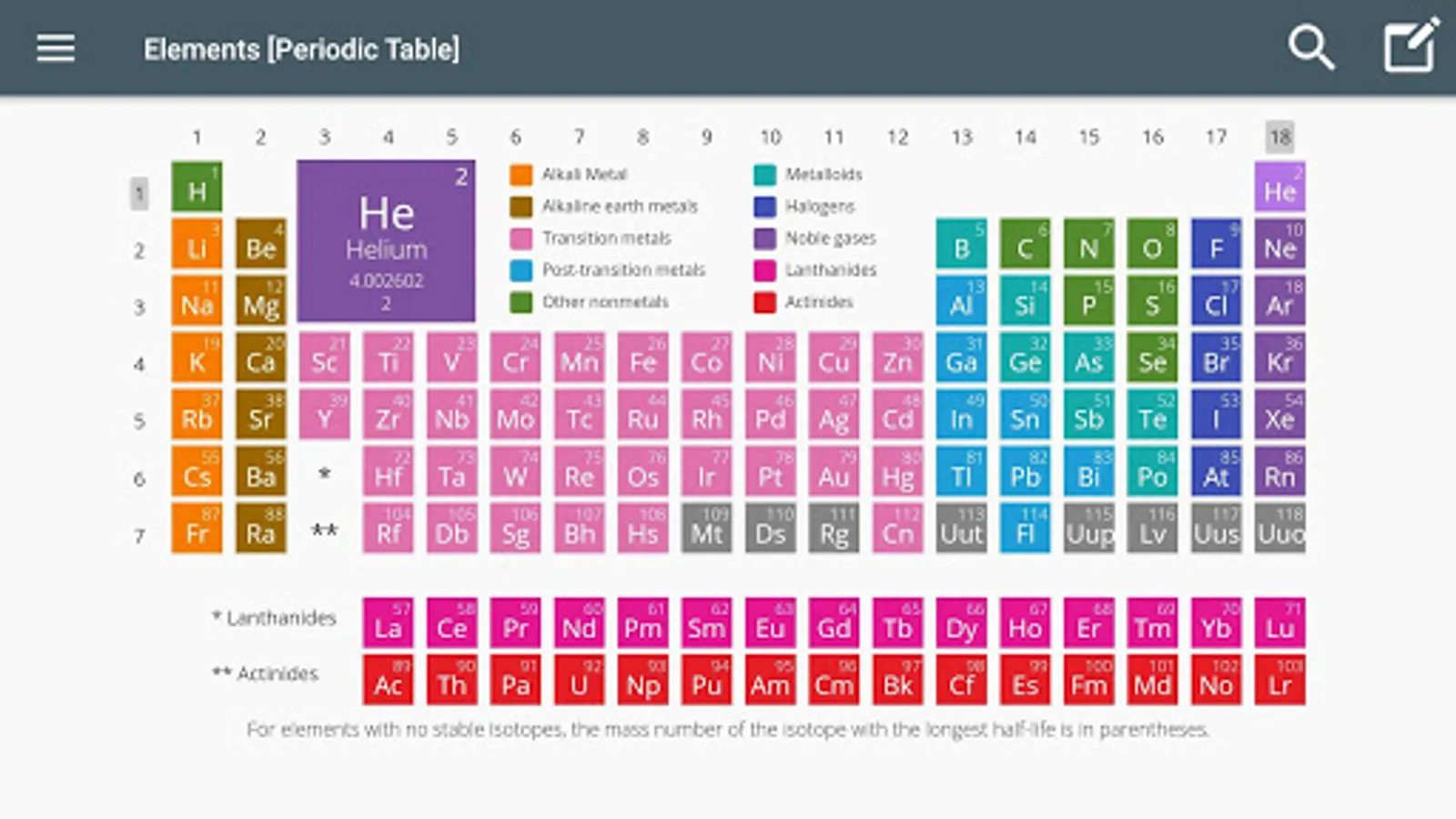 The application is an interactive modern periodic table which provides comprehensive and useful information about the chemical elements all in one place.
