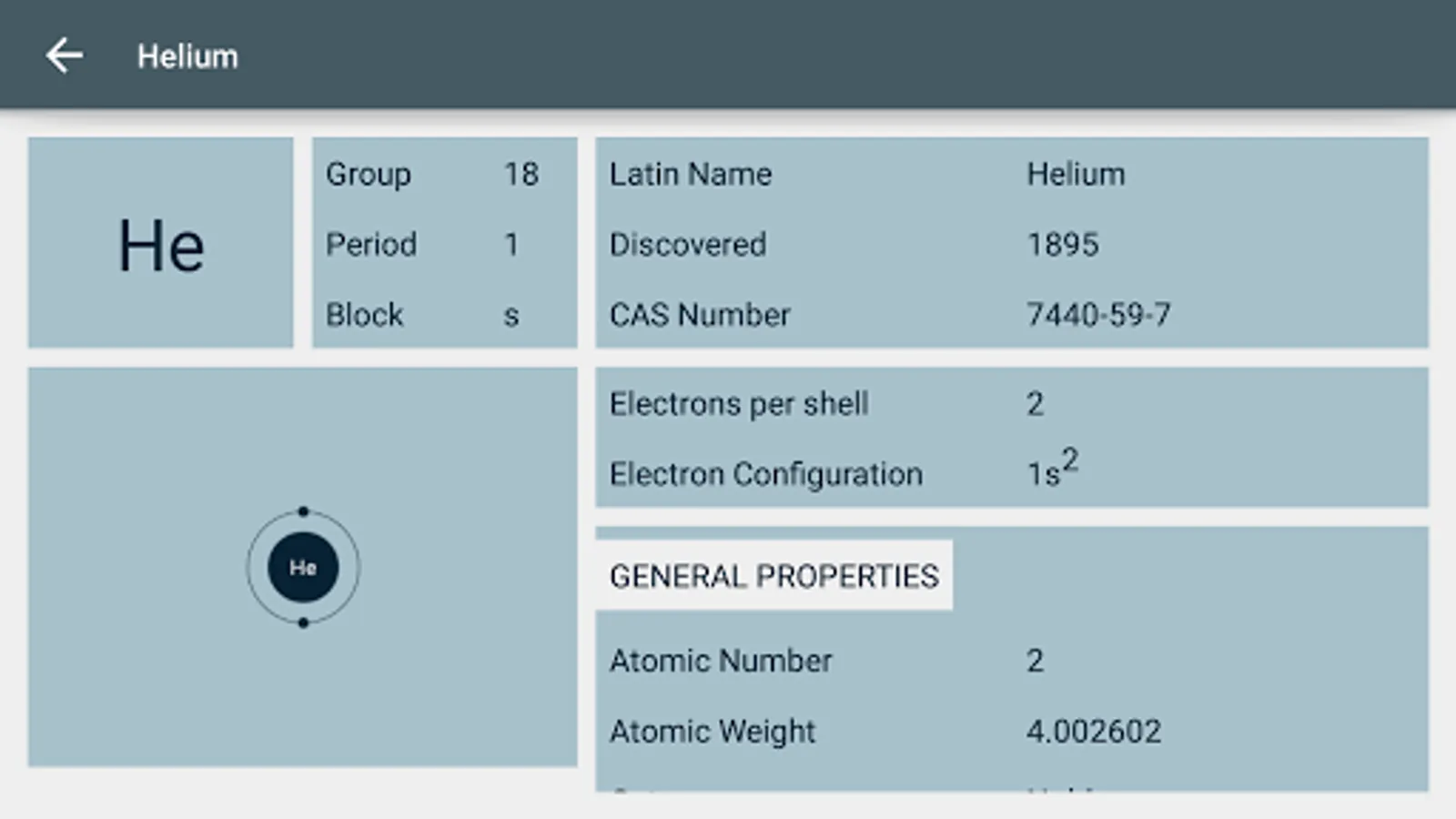 2. General, Physical, Atomic, Electromagnetic properties of each element