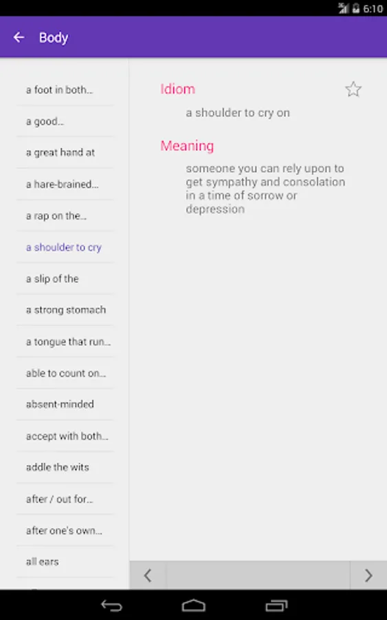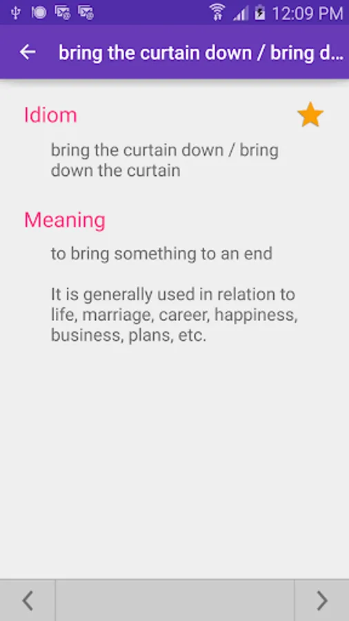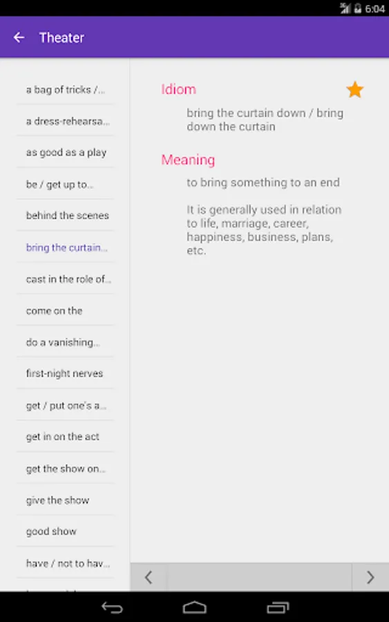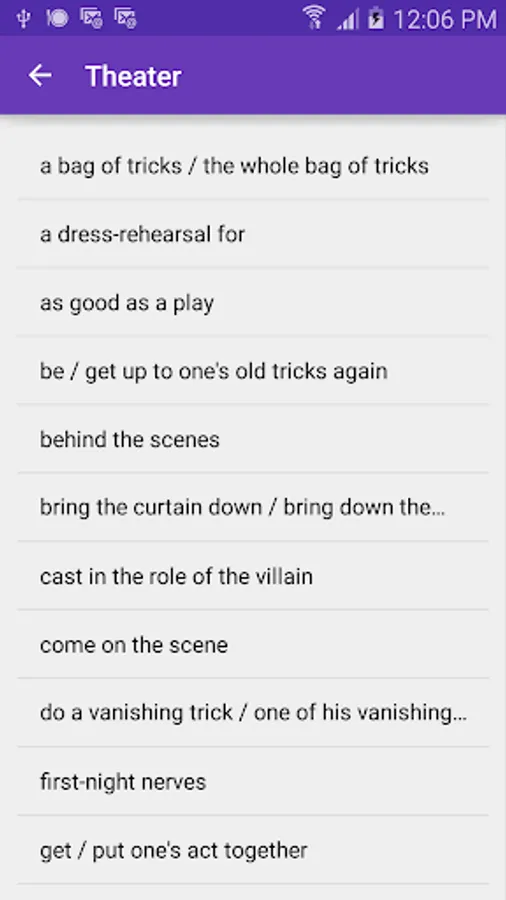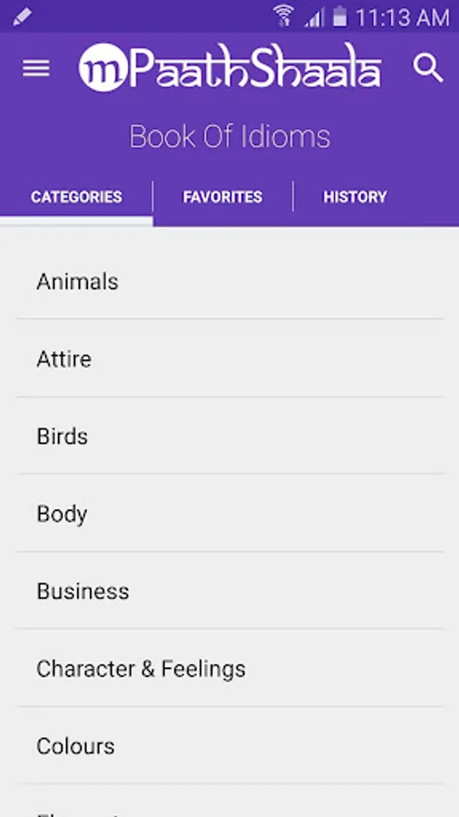 'Book Of Idioms' application will help you in understanding the correct meaning and usage of thousands of idioms. It is the most comprehensive collection of English Idioms with over 4000 idioms arranged in 37 categories.