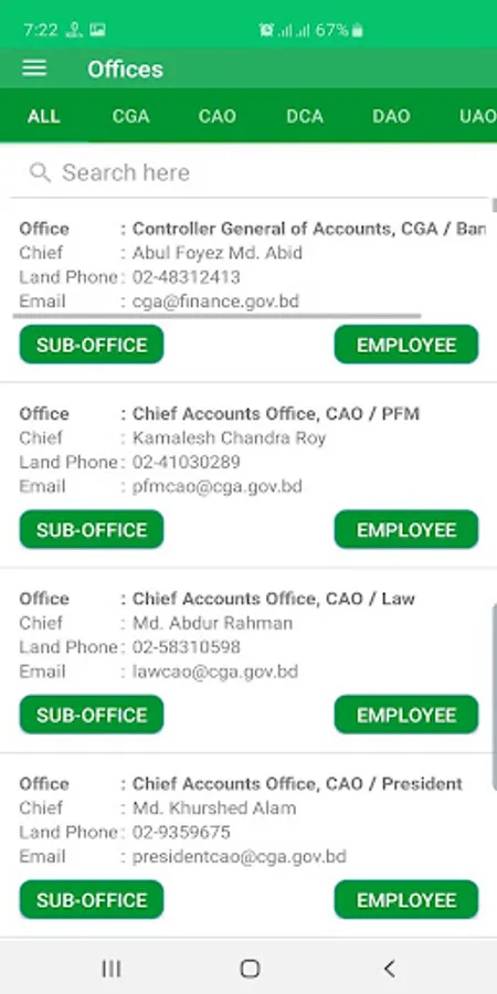 Office of the Controller General of Accounts, Office Assistance is the application for all necessary information of the employee