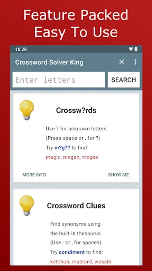 Scroll through the tips for quick reminders of all the features. There is also an online user guide showing you how to use the app to crack cryptic crosswords.