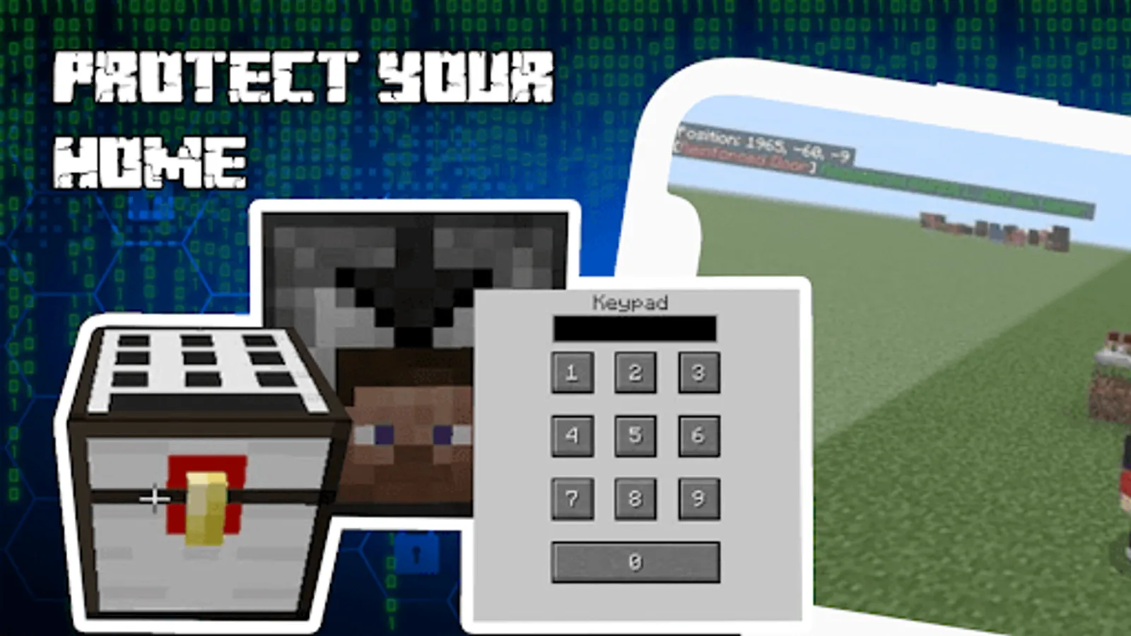 The addon Home Security mod for Minecraft is something that has been lacking for a long time for the survival mode. Your secrets house, resources and secrets block / blocks will be under the control of the addon House protection mod for Minecraft. In the house you can put a security code that will protect your front door MCPE Bedrock. Home protection addons and mods security for Minecraft provide maximum security, even for the most unprotected safety building in survive mode.