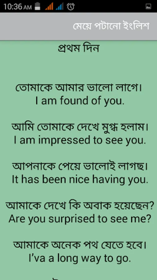 অ্যাপসটি মূলত আপনাকে স্মার্টলি ইংলিশে কথা বলা শিখতে সাহায্য করবে।প্রেমিক প্রেমিকাদের জন্য রোমান্টিক ইংলিশ সংকলন।এমনকি অফিসেও কিংবা বিদেশী বন্ধুদের সাথেও ইংলিশে কথা হোক আপনার যেই প্রত্যাশা রইল।