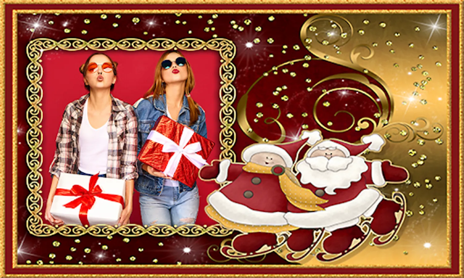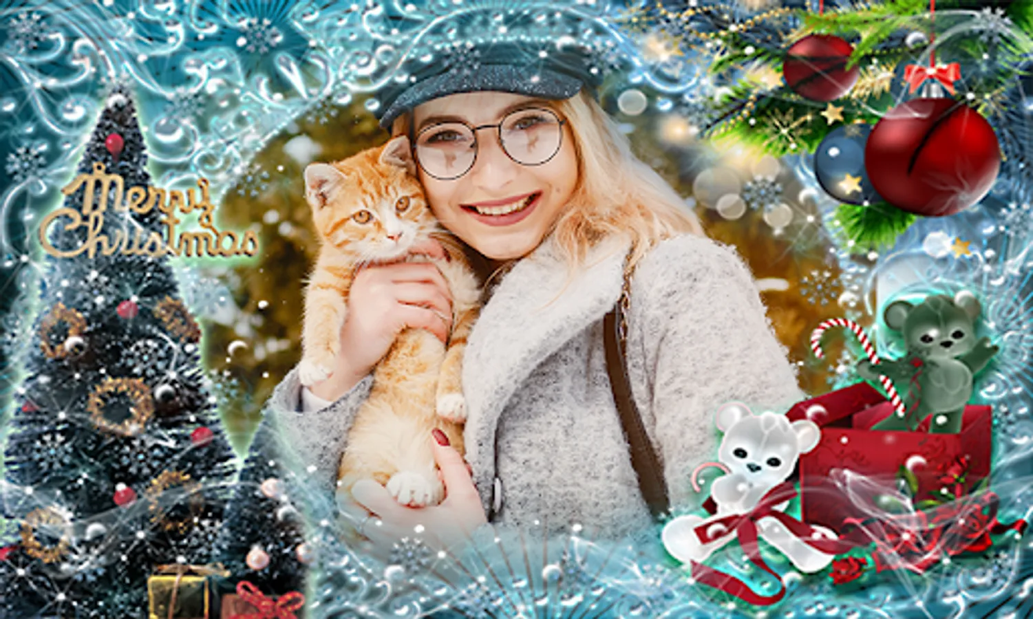 Christmas Photo Frames. Many Christmas Photo Editor to choose. Take beautiful pictures with New Year’s photo frames. Send as Christmas greeting cards to spread Xmas wishes to your loved ones. You can choose to apply Xmas stickers such as Christmas globe, Santa Clause, Christmas tree, gingerbread man, ornaments, ice castle, star, stocking, presents, gifts, white snow, snowman or reindeer. Personalize your photo image and make them stunning.