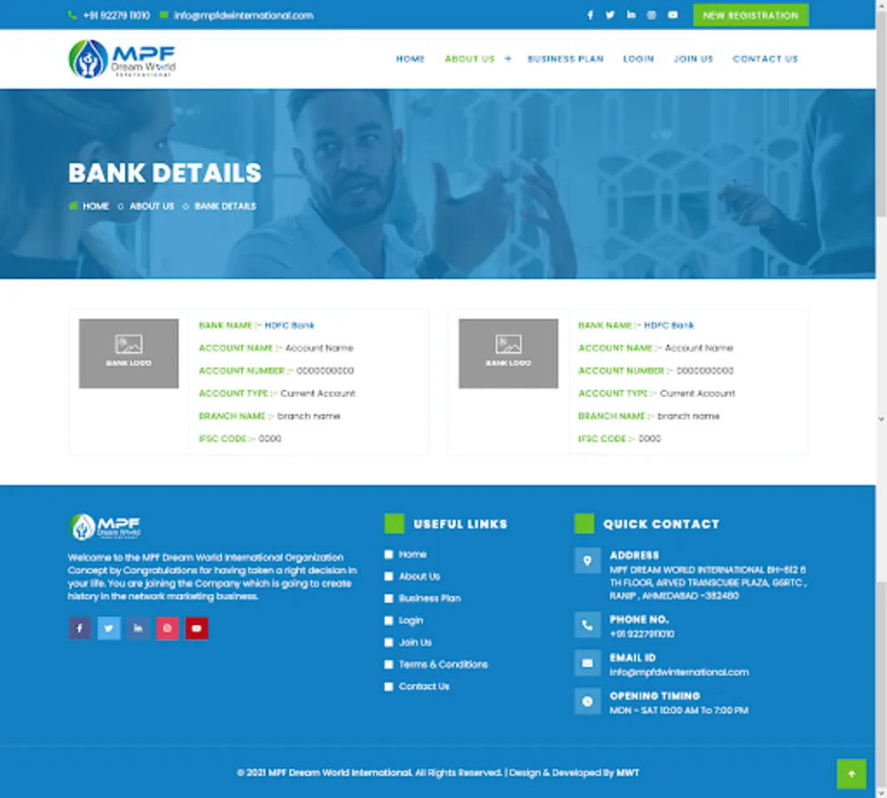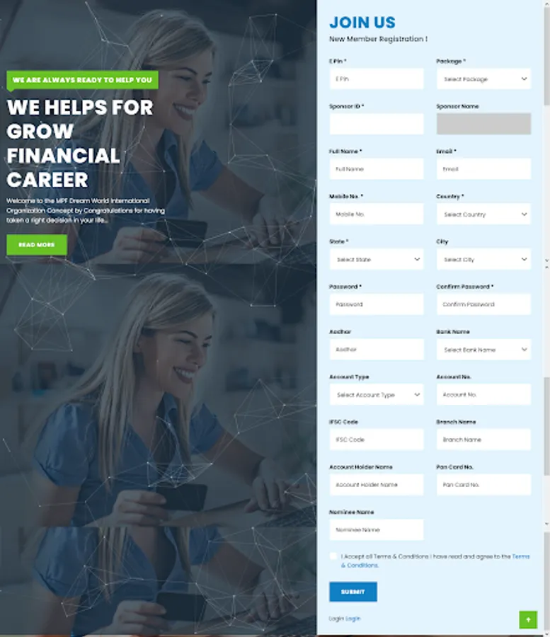 We welcome you to the mesmerizing world of MPF DREAM WORLD INTERNATIONAL NIDHI LIMITED. The business of financial marketing was started by the Head Office on 30.12.2020 and today it has crossed the maximum limits of our business. This is our first venture into a financial company. With the support of customers / members, within a couple of years, the company will reach the highest position in the banking sector.