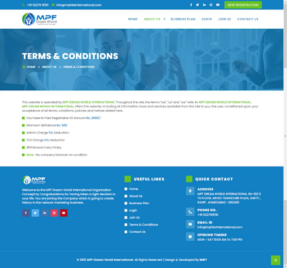 To be successful in MPFDW, You require only two things. First, to believe in what you dream and second firm belief on MPF DREAM WORLD INTERNATIONAL NIDHI LIMITED.
