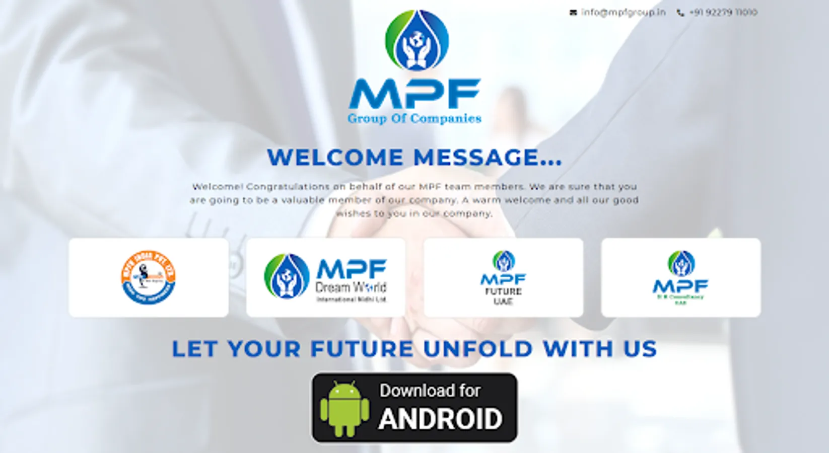 Welcome! Congratulations on behalf of our MPF team members. We are sure that you are going to be a valuable member of our company. A warm welcome and all our good wishes to you in our company.