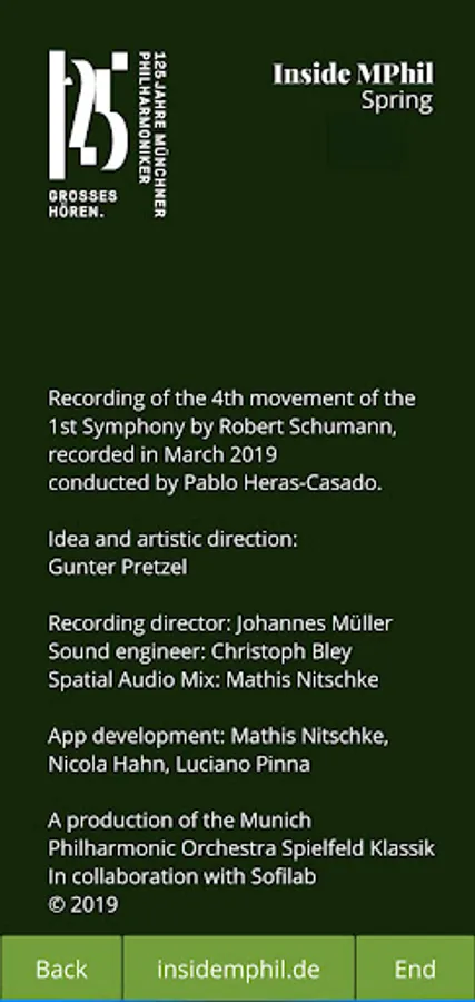 With the free app “INSIDE MPHIL – Frühling” (spring) you can experience the Munich Philharmonic Orchestra virtually on a meadow of your choice as if the musicians were set up there. With the GPS-connected smartphone and headphones you enter the orchestra acoustically and hear the instruments as if you were standing next to them, just as the musicians hear themselves and their colleagues: the violins, the oboe, the timpani or whatever you want to hear. This is made possible by the sophisticated smartphone app by sound designer Mathis Nitschke and violist Gunter Pretzel.