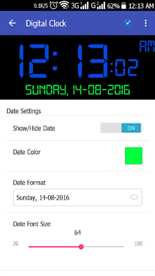 Note: DO NOT USE VERY LOW OPACITY, YOU WILL NOT ABLE TO TAP AND OPEN SETTINGS. IF AND YOU CAN GET THE SETTINGS THEN PLEASE OPEN YOUR APPS DRAWER AND FIND "DIGITAL CLOCK" TO OPEN THE SETTINGS.