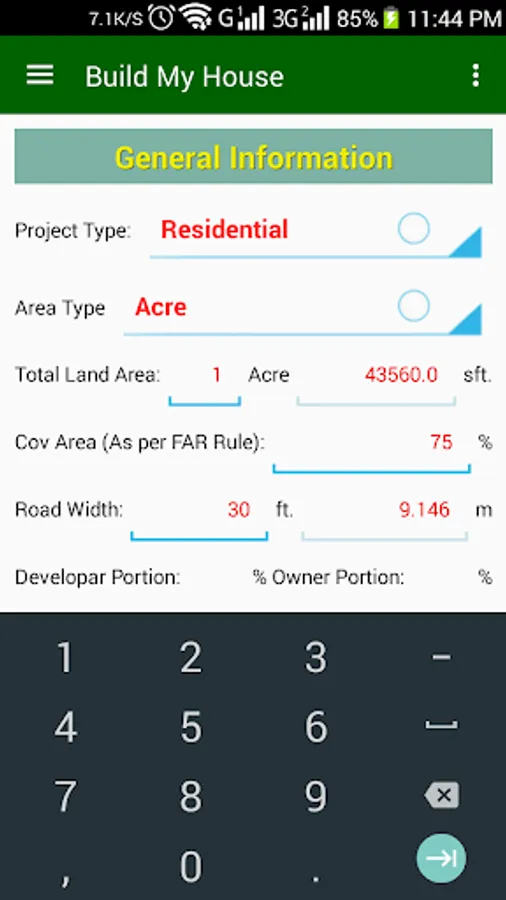 - Enter your Land Area in Square Meter/Square Feet/Acre/Katha/Bigha