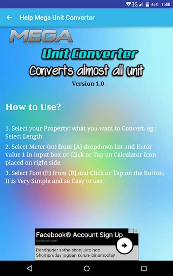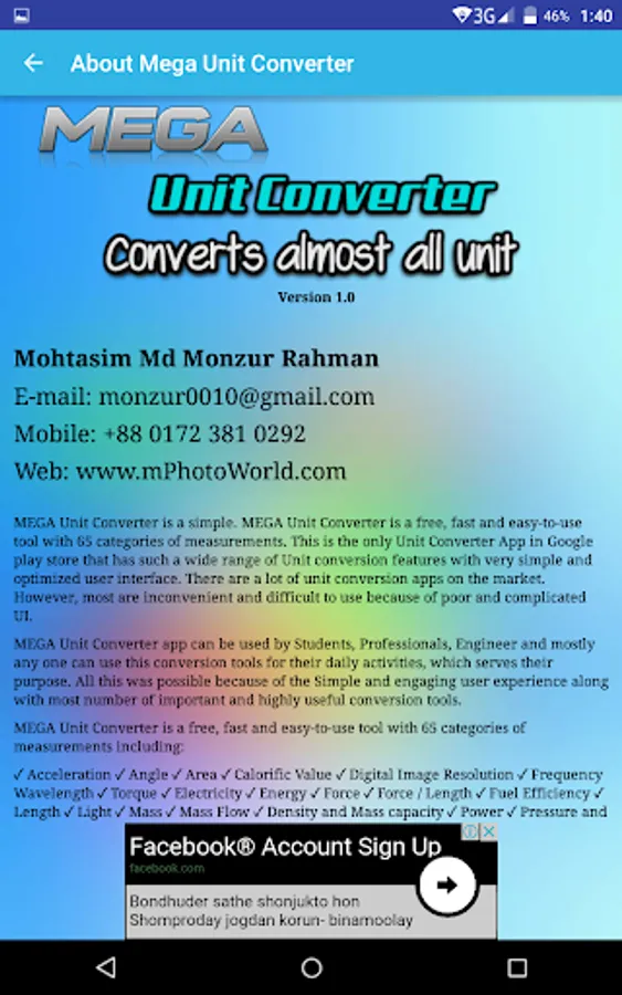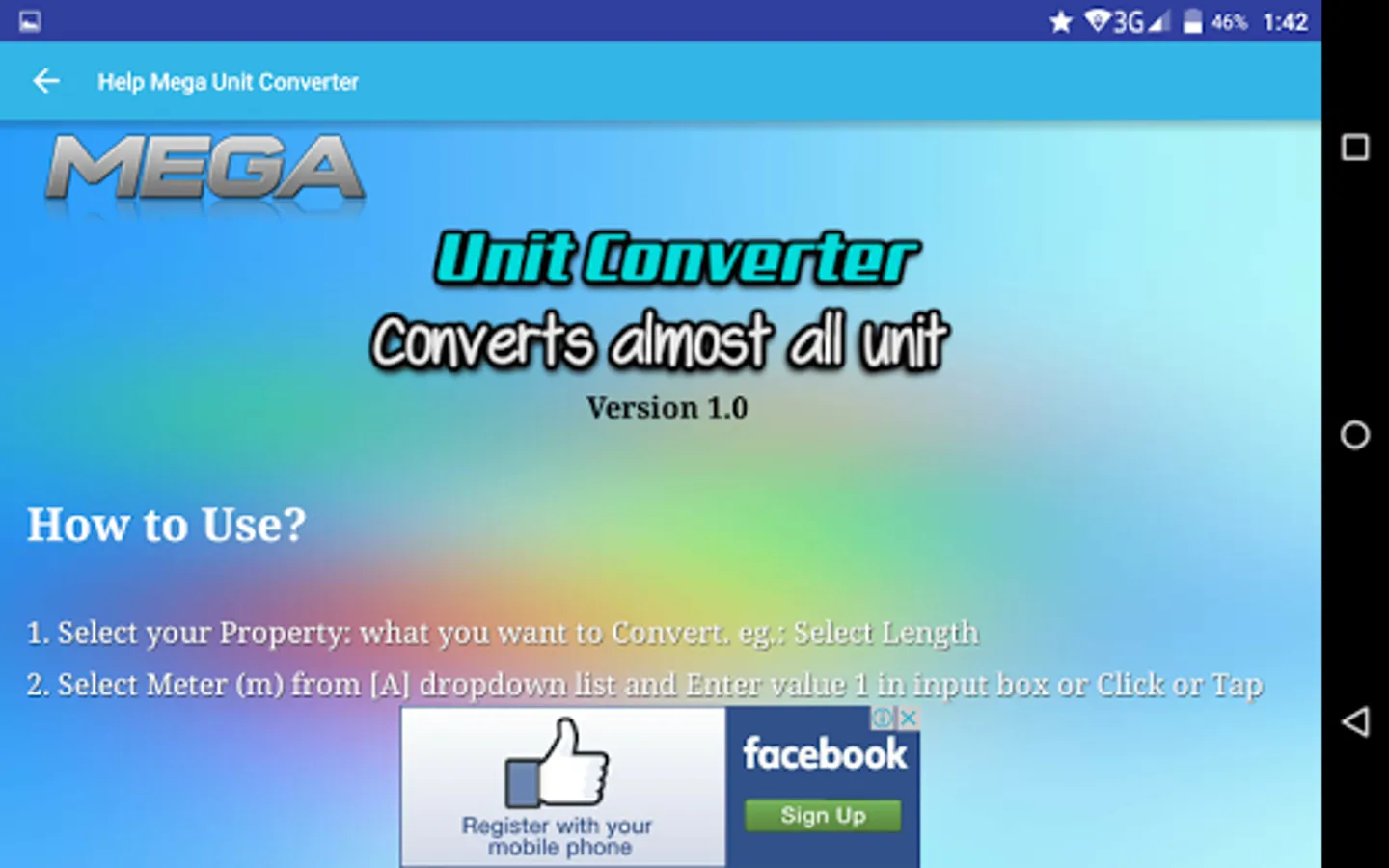 MEGA Unit Converter is a simple. MEGA Unit Converter is a free, fast and easy-to-use tool with 65 categories of measurements. This is the only Unit Converter App in Google play store that has such a wide range of Unit conversion features with very simple and optimized user interface. There are a lot of unit conversion apps on the market. However, most are inconvenient and difficult to use because of poor and complicated UI.
