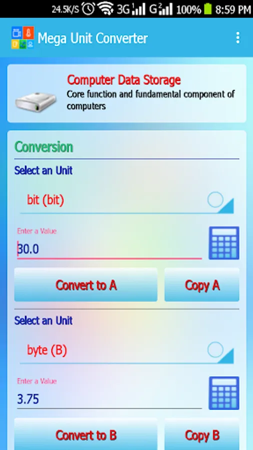 P.S. Unit converter was designed with the goal of supporting wide range of devices from small screen phone devices to large screen tablets plus it features worldwide languages and their conversion system. We aim to add and support more range of units to the application in the near future. Thanks for your continuous support.