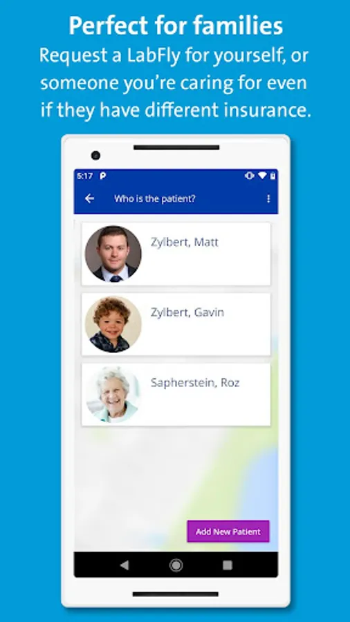 LabFly by Northwell Health Labs is an easy-to-use mobile app that brings our lab experts to you. Simply download the app to schedule your next blood draw appointment at a time that fits into your day. Best of all, we come to you at work or home for privacy and maximum convenience.