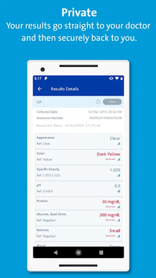 • View your test results in the app