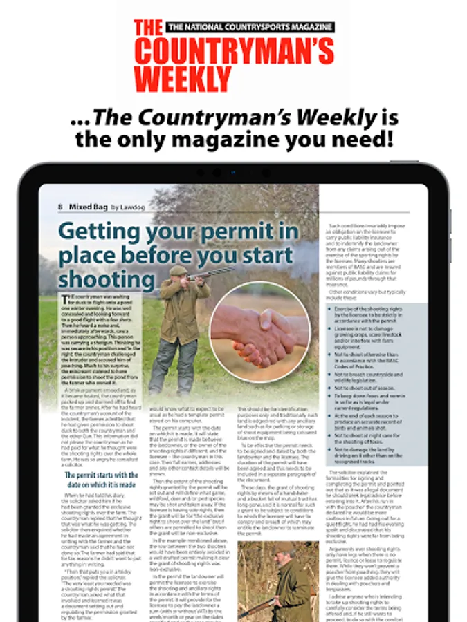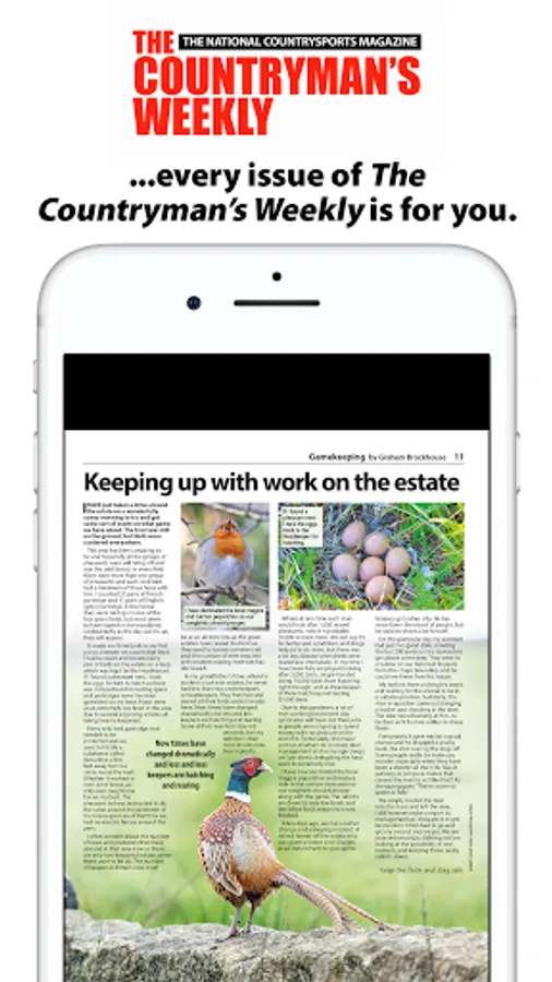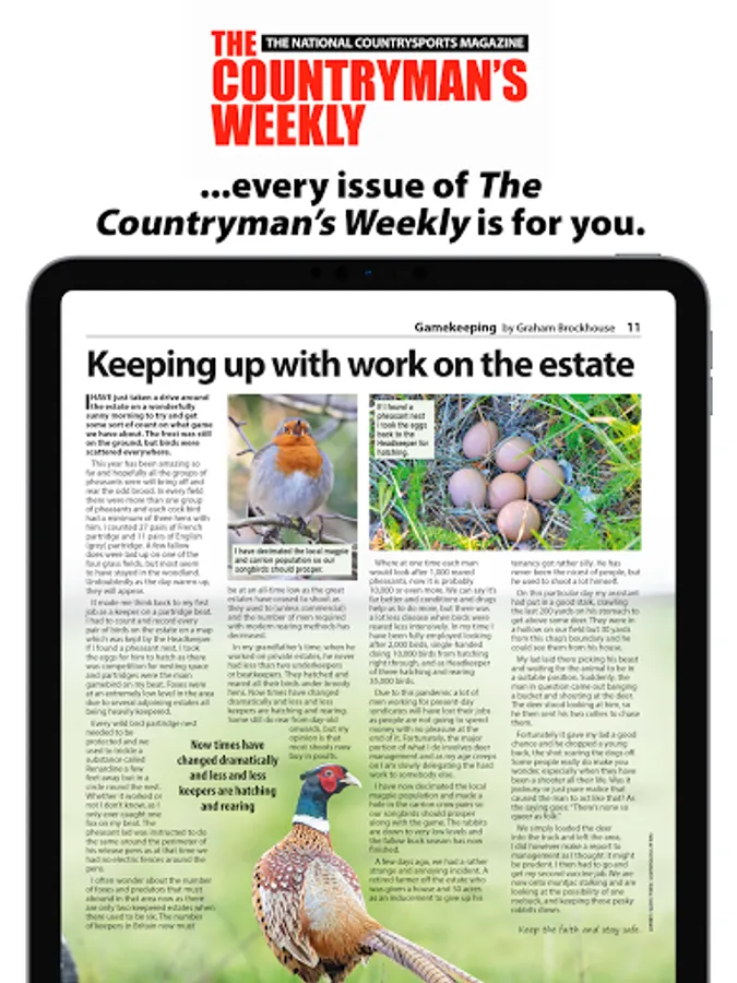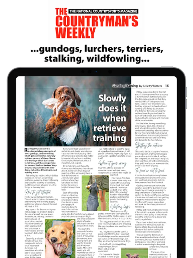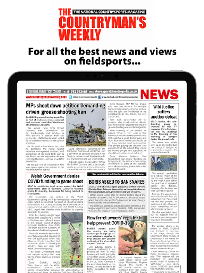 Written by enthusiasts for enthusiasts, The Countrymans Weekly is a must-read for everyone with an interest in all things countrysports. Every issue is packed full of content, covering a wide range of subjects including lurchers, terriers, ferreting, gundogs, gamekeeping, shooting, hunting and fishing. In addition, other disciplines such as deerstalking, falconry, wildfowling and pest control are also featured while there is also extensive coverage of the best country shows and game fairs, wholesome recipes and fantastic competitions every week. Whether you are a keen participant or spectator of countrysports, The Countrymans Weekly is for you!