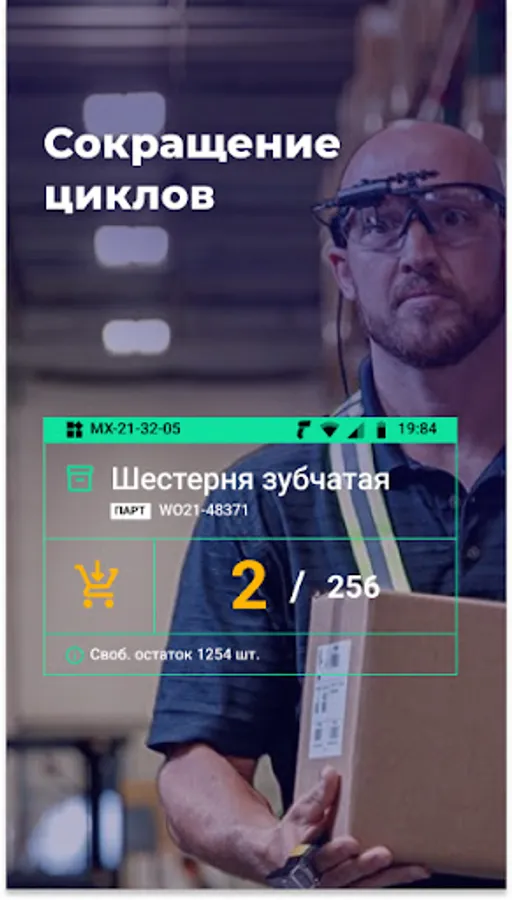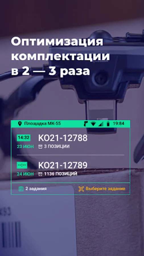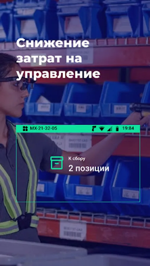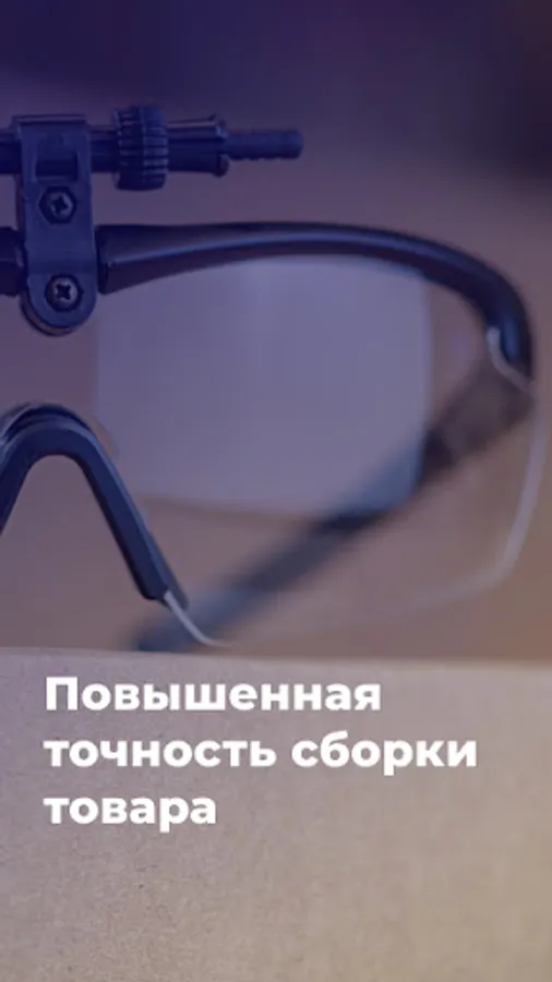 The app allows you to perform hands-free picking, picking and packing processes. The use of TSD in conjunction with AR glasses, a subcompact barcode scanner and MPI software allows you to completely free the hands of the component and optimize the process 2-3 times.