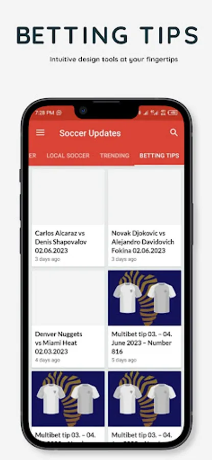 Soccer Updates: Bet, News, Tips. Dive into the exciting world of soccer with our comprehensive app, delivering an exceptional range of features for fans and bettors alike. Gain an edge in your betting endeavors with our carefully curated tips and insights, stay up to date with the latest soccer news from around the globe, and unlock a treasure trove of knowledge on trending topics within the sport. Whether you're seeking betting success or simply craving the latest soccer updates, our app is your ultimate companion. Take your passion for soccer to the pro level – download now!