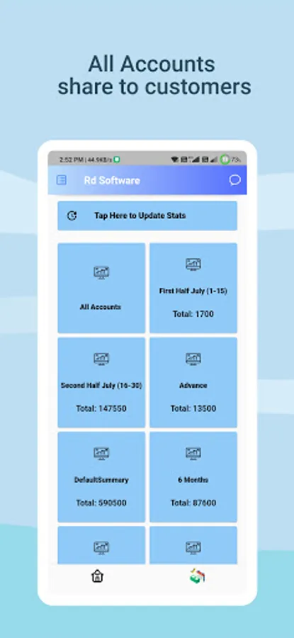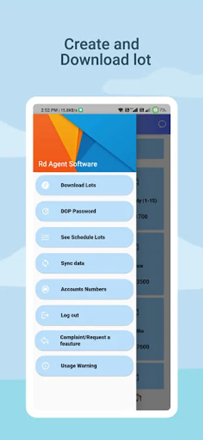 This app is for Postal Rd agents, software helps to Prepare Lists/Lots/Schedules and also can Download them inside app and its available for version currently , accounts sync is available ,Now You can Check stats of business 6 months, first half , second half ,default books With names and amount ,And the total of each group amount can be seen