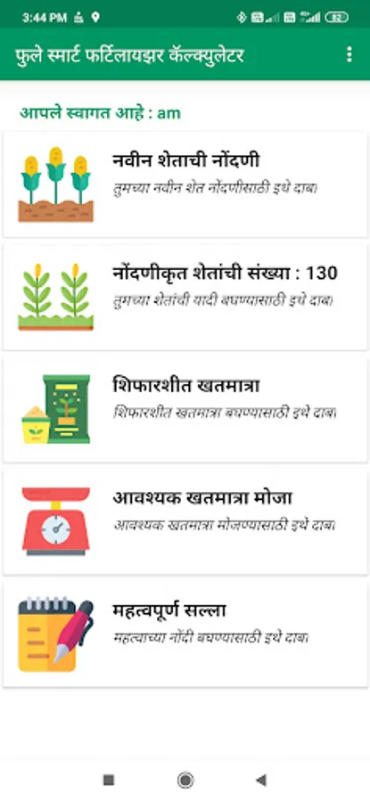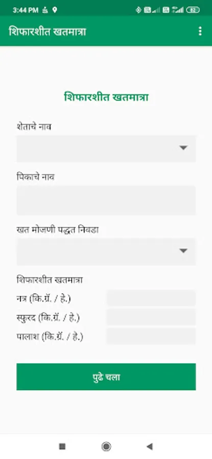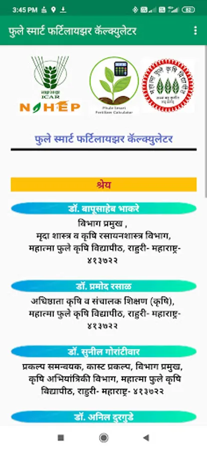 “Phule Smart Fertilizer Calculator” android and web application calculate crop-wise fertilizer requirements by using three different methods viz. Soil Test Crop Response (STCR) equation, Recommended Dose of Fertilizer (RDF) and As per Soil Test (AST) by using the following input parameters of soil from the soil test report: Soil pH, Electrical Conductivity, Soil Organic Carbon, Calcium Carbonate percentage, Soil Available Nitrogen, Phosphorus and potassium.