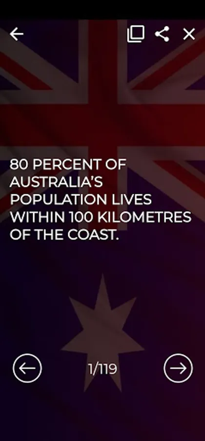 Likewise, you can find hundreds of facts about Australia by downloading our app.