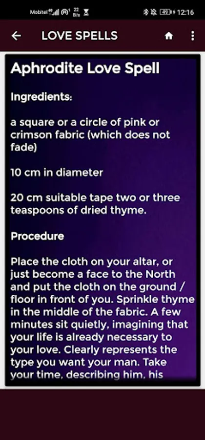 Love spells are some of the magical things which you can do to get your love into your life in an alternative way. This app contains lots of love spells to manifest love. This app divide into two main categories which show the love spells and guide to cast spells. There are multiple different spells you can Patrice to find success to get the love into your life.
