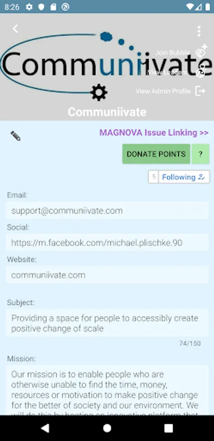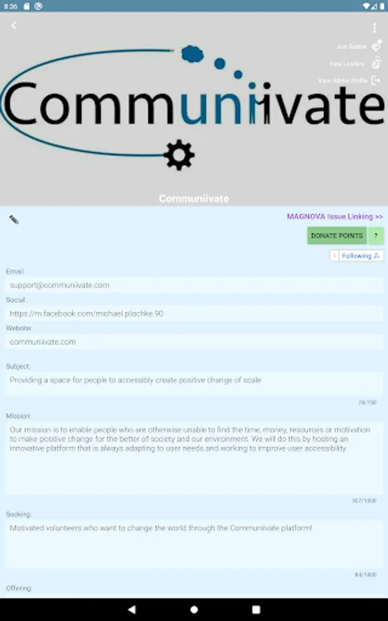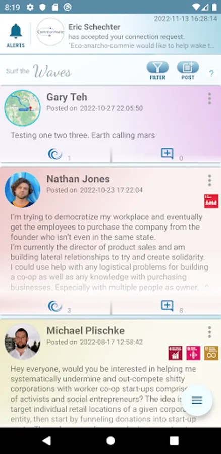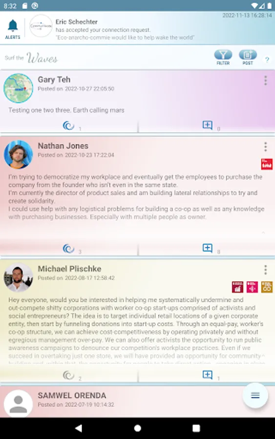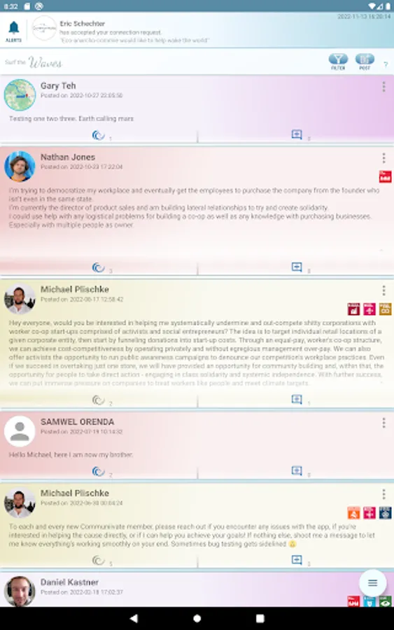 - Robust, in-app filtering systems for finding likeminded changemakers