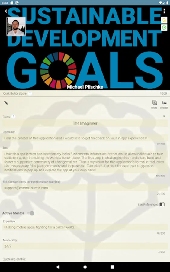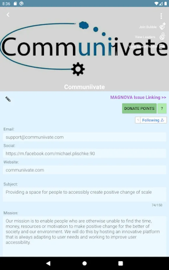 The biggest hurdle of any aspiring changemaker is getting started. In order to change the world, you need to have resources, connections, knowledge and experience - all out of reach for most. Communiivate intends to change that by becoming the world's largest changemaker platform; hosting an active, tightly-knit community of incredible individuals and continuously improving accessibility for positive change-making.