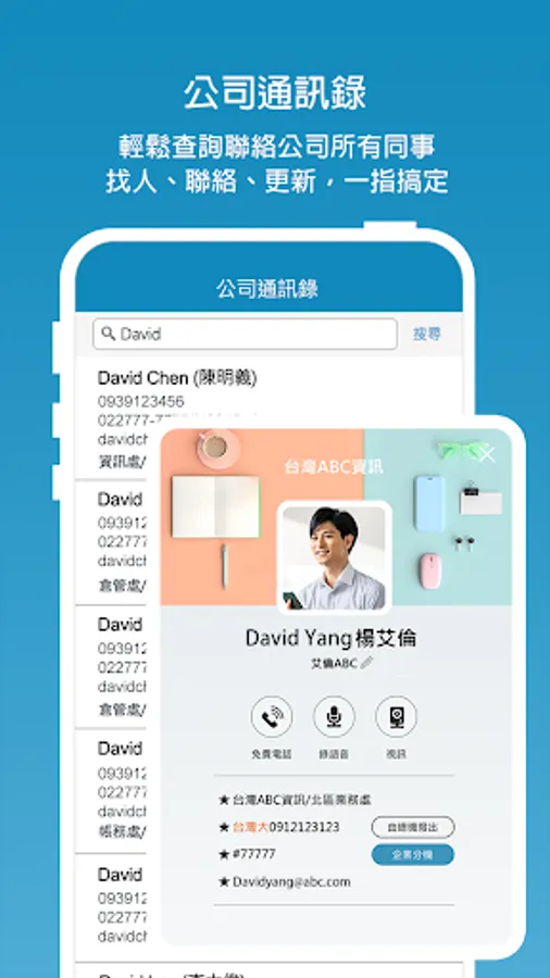 》To find colleagues, you only need to use the "Company Address Book", enter keywords, contact directly in various ways, and update the communication data in the cloud at one go, and the mobile phone book no longer needs to be manually processed one by one
