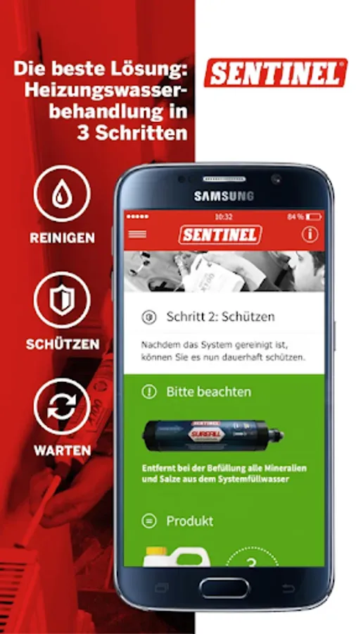 Our app determines the right SENTINEL products for your customer's heating system on site and in just a few steps, and determines the correct dosage in a single step.