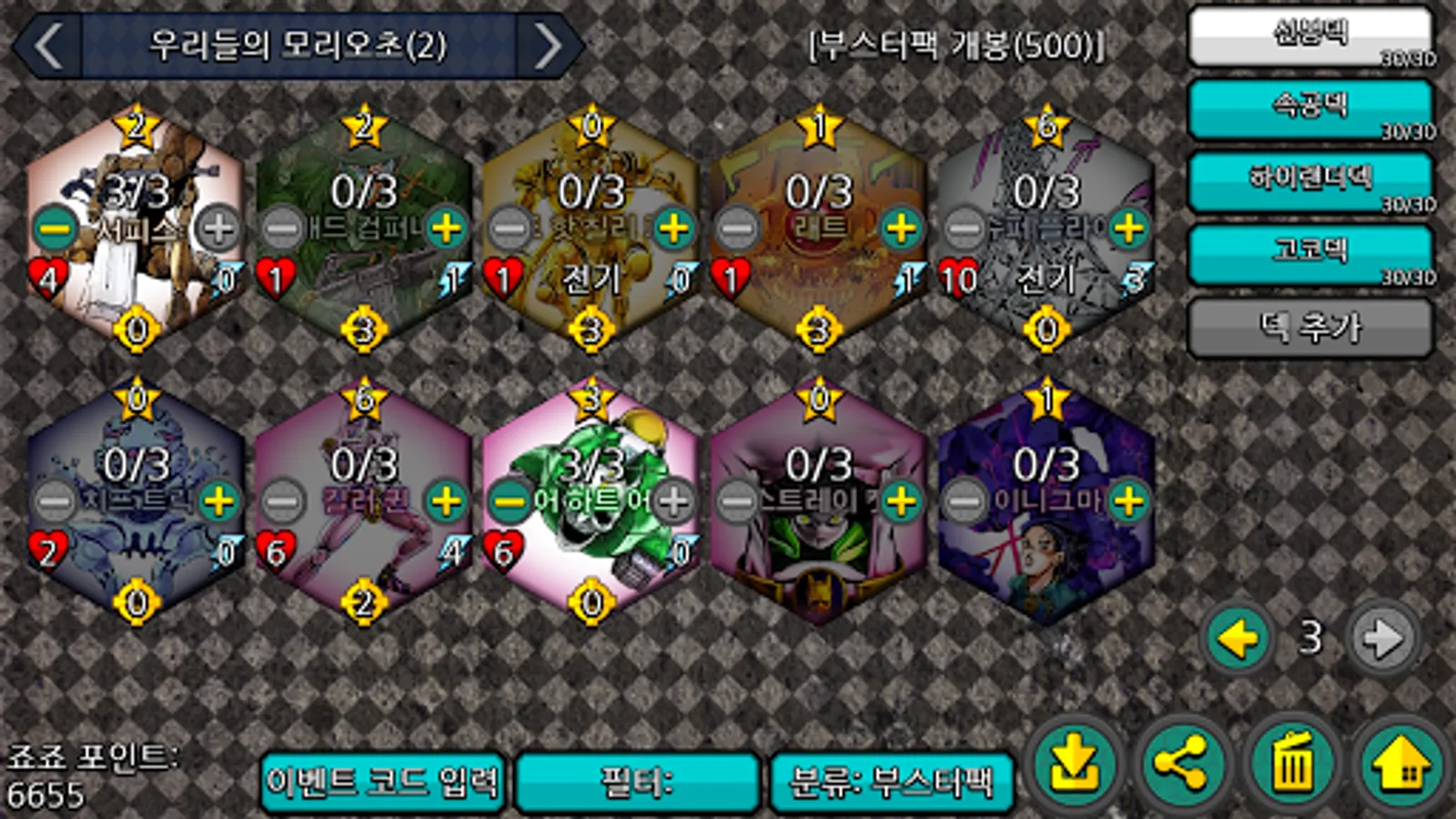 Wallet cards in the deck as much as they own and JoJo card to get points when you win the Arcade mode