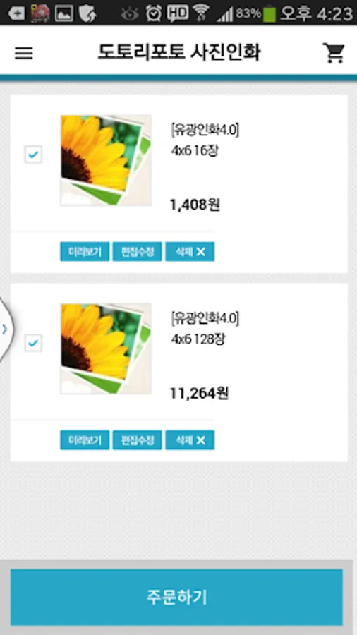 - 인화할 사진 고르고 전송하면