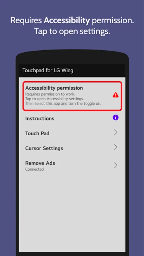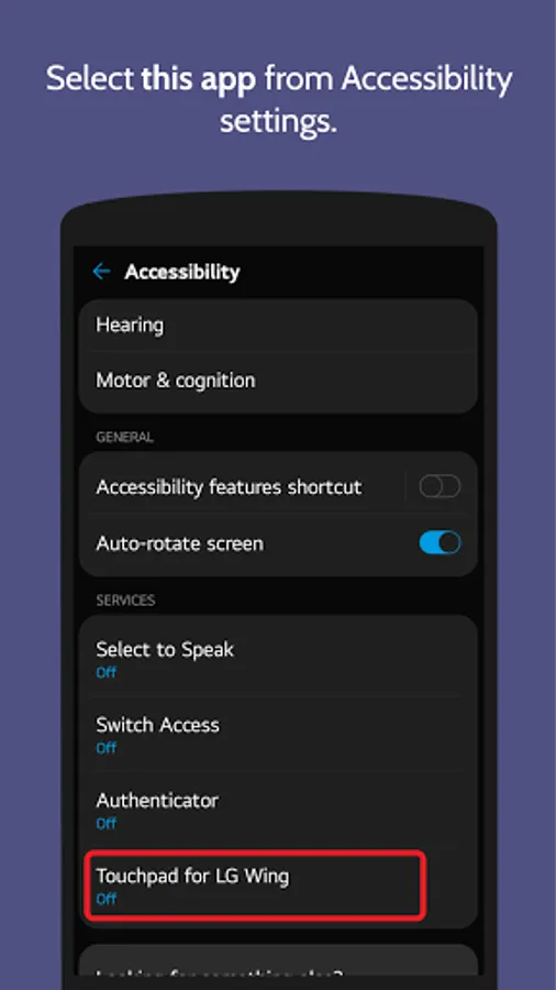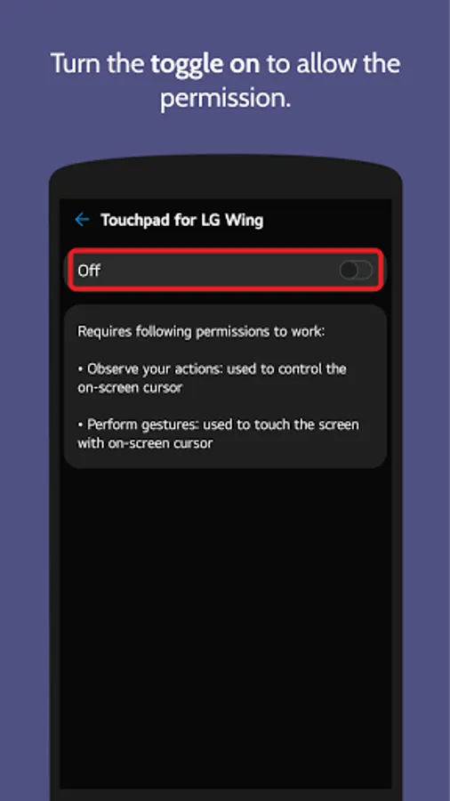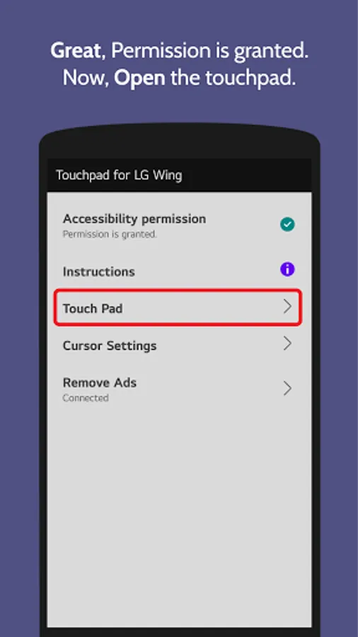 This app opens Touchpad in the mini display of LG Wing to control your swivelled display.