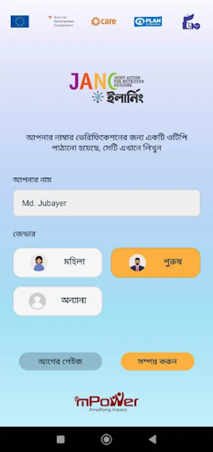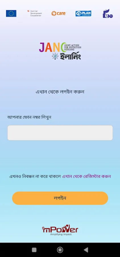 The JANO eLearning for Frontline-workers is an android app for frontline-workers where they can access digital content regarding nutrition. The app can be used for registration, evaluation, content viewing and user-based tracking and reporting. Content will be managed by content manager from web. Managers can view system reports