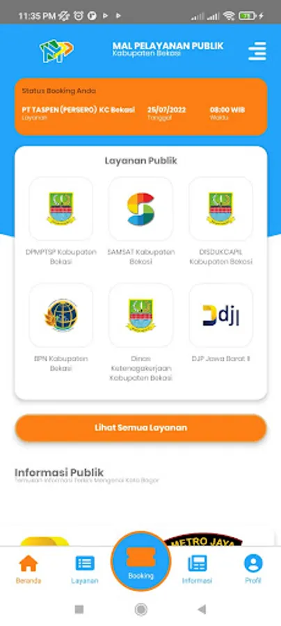 1. Informasi profil seluruh instansi pelayanan di Kabupaten Bekasi