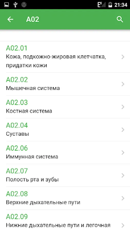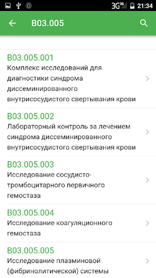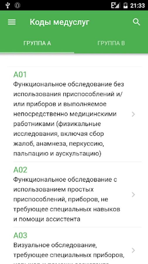Appendix easy navigation - codes of medical services are grouped according to the nomenclature.