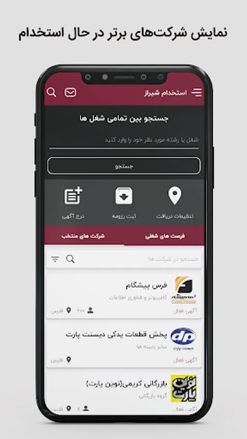 And many other practical facilities that by installing the "Shiraz Hiring" application, you will be able to find the job you want in Fars Province in the shortest possible time.