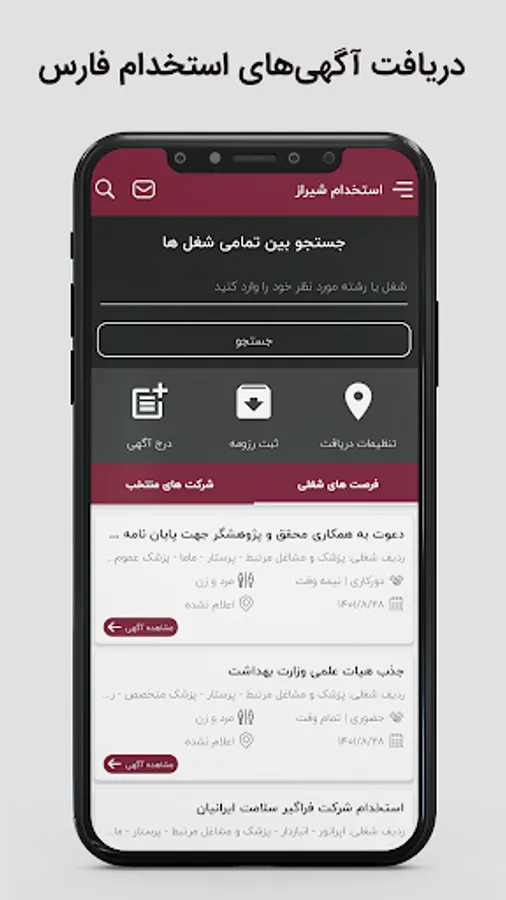 Through the "Shiraz Recruitment" application, you will receive all recruitment ads in Fars province for free.
